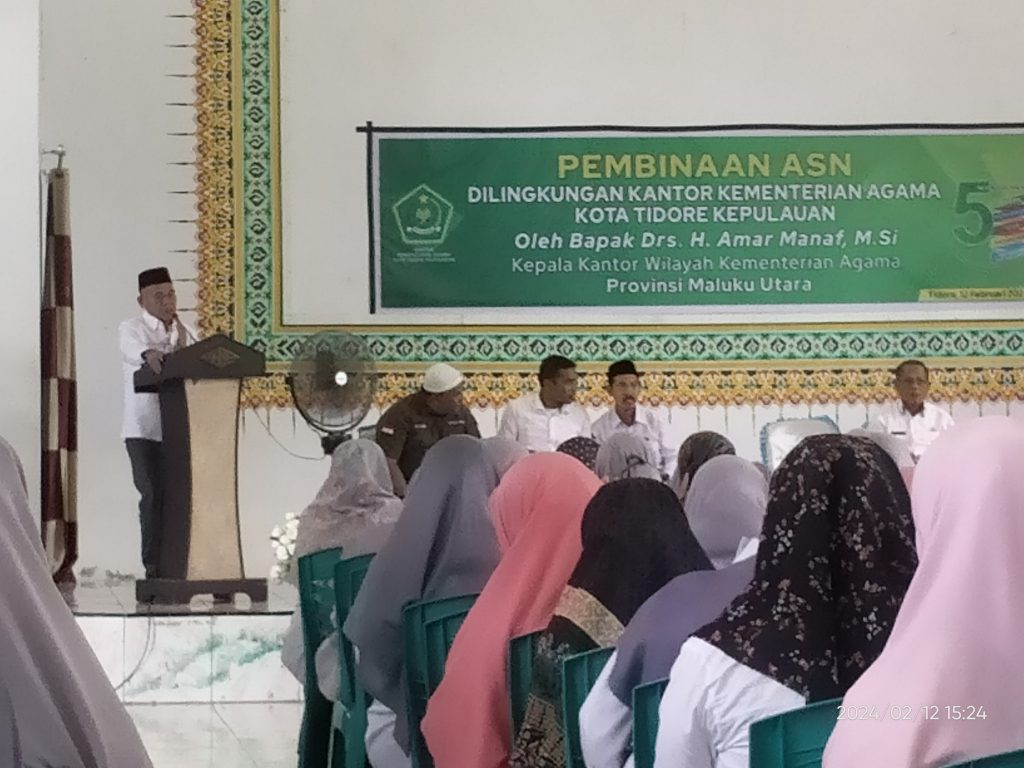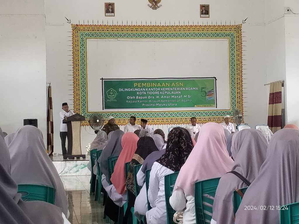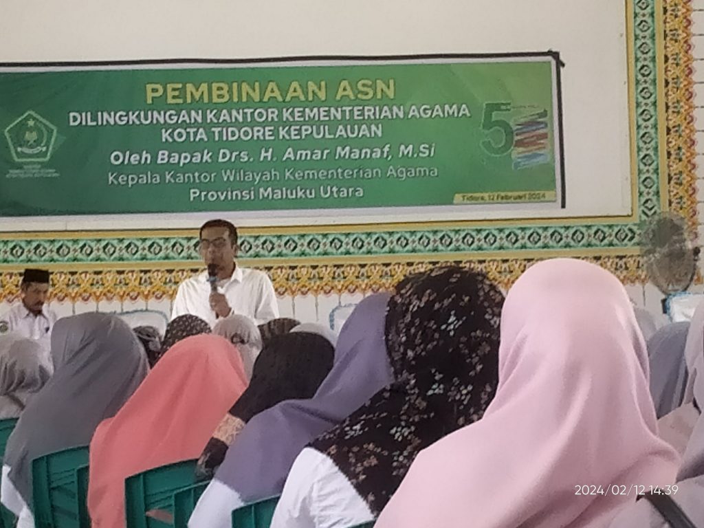 Senin, 12-02-2024. Guru beserta Tendik MTsN 1 Tidore mengikuti kegiatan pembinaan ASN oleh Bapak Drs.H.Amar Manaf, M.Si, Kepala Kantor wilayah Kementerian Agama Provinsi Maluku Utara di Aula Ponpes Harisul Khairat Ome