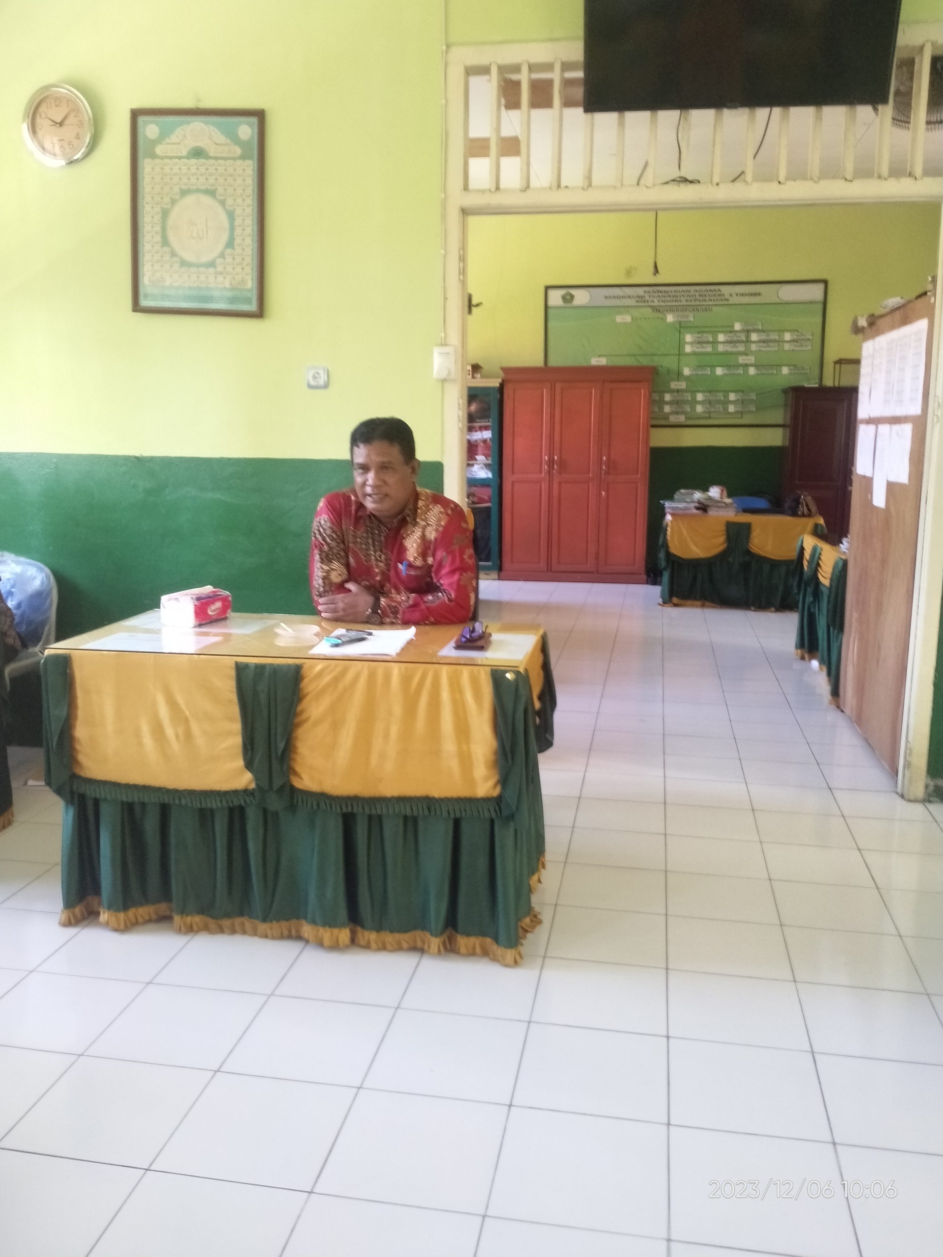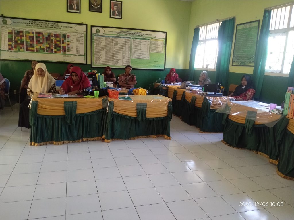 Rabu, 6 Desember 2023, Kepala Madrasah Bapak Lukman Djamal, S.Pd memimpin Rapat persiapan menyongsong Hari Amal Bakti ke 78 tahun 2024 diruang Guru MTsN 1 Tidore, ada beberapa hal yang disampaikan salah satunya yaitu persiapan Doorprize dari Bapak ibu Guru dan Tata Usaha untuk kegiatan tersebut yang direncanakan dilaksanakan di Ternate, Maluku Utara.