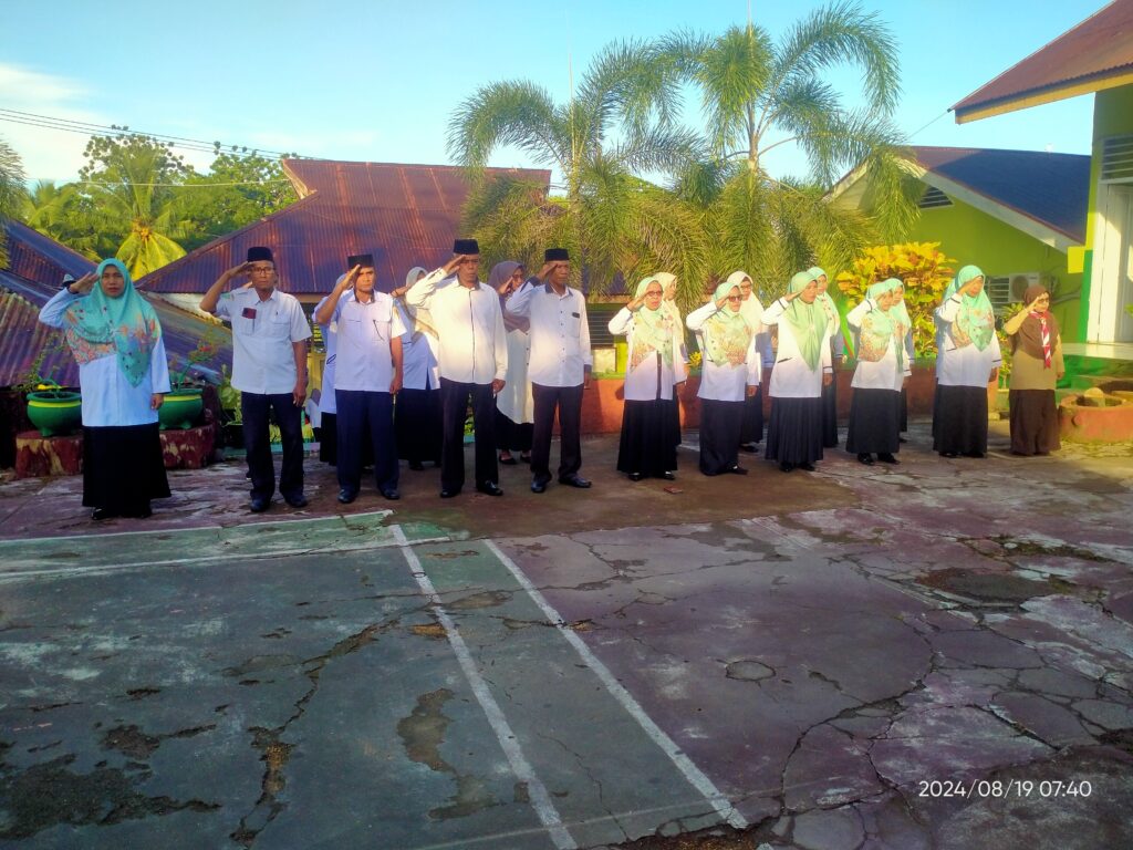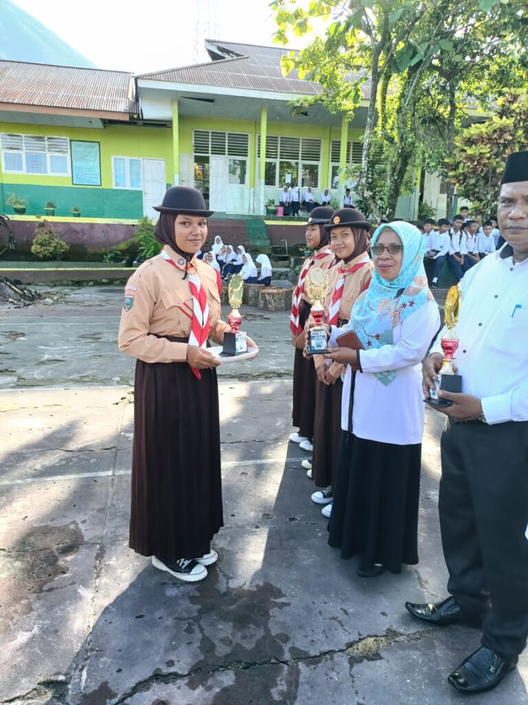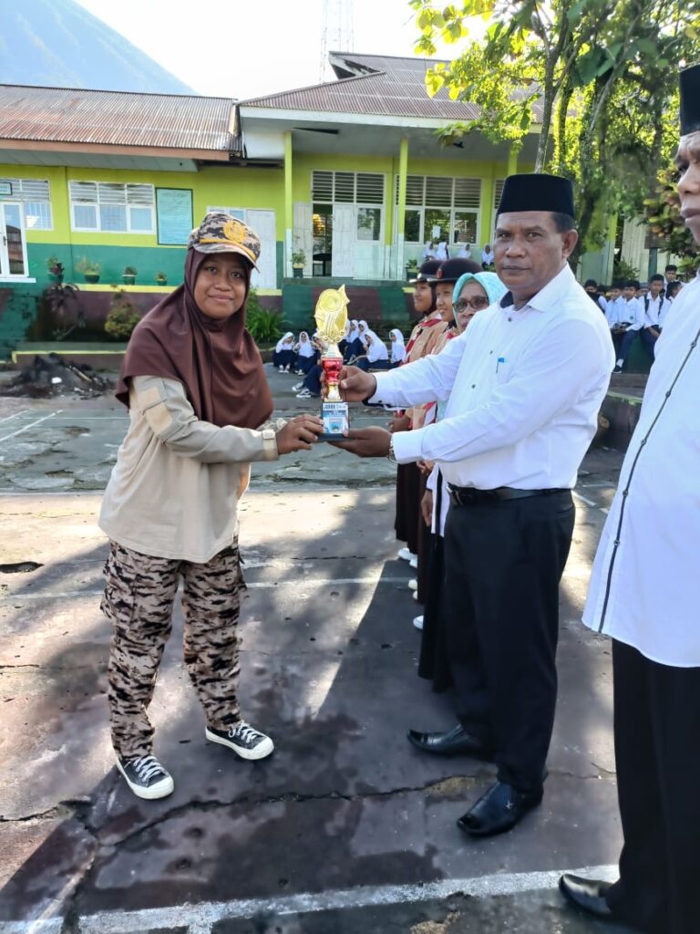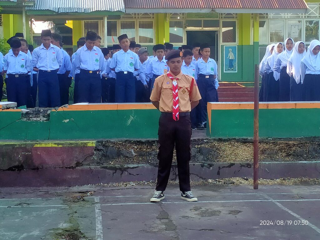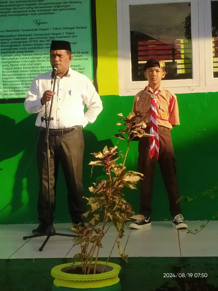 Upacara Bendera hari Senin tanggal 19 Agustus 2024 yang dirangkaikan dengan penyerahan piala dan piagam dari peserta perkemahan Mabicab III dan dari regu gerak jalan putra ke Kepala MTs Negeri 1 Tidore. Dalam arahan Kepala Madrasah mengucapkan terima kasih dan apresiasi yang setinggi-tingginya atas keberhasilan yang dicapai, Insya Allah kedepan lebih baik lagi…🤲