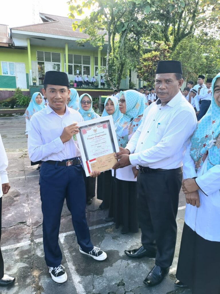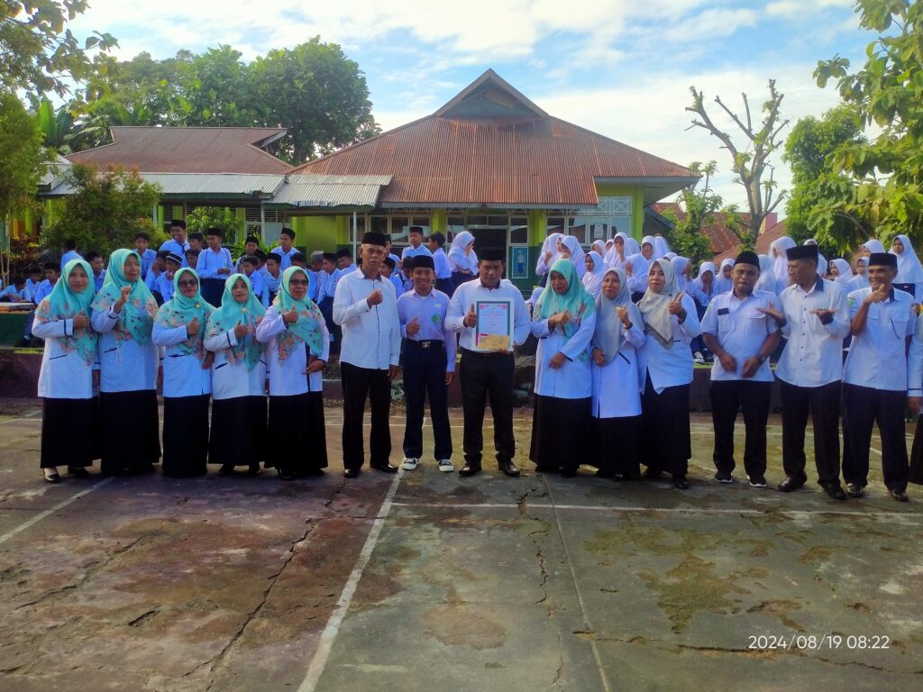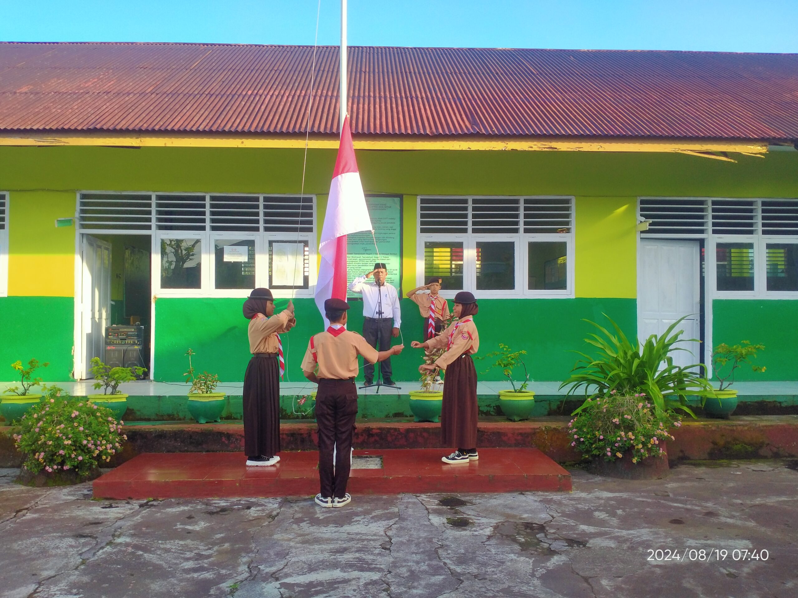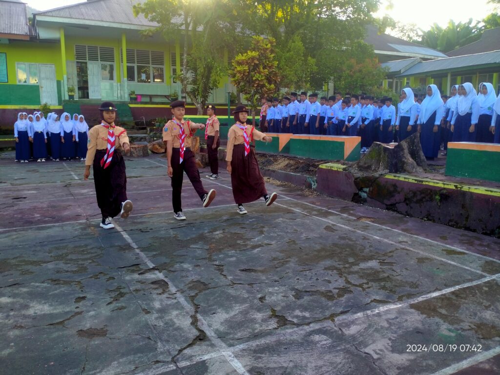 Upacara Bendera hari Senin tanggal 19 Agustus 2024 yang dirangkaikan dengan penyerahan piala dan piagam dari peserta perkemahan Mabicab III dan dari regu gerak jalan putra ke Kepala MTs Negeri 1 Tidore. Dalam arahan Kepala Madrasah mengucapkan terima kasih dan apresiasi yang setinggi-tingginya atas keberhasilan yang dicapai, Insya Allah kedepan lebih baik lagi…🤲