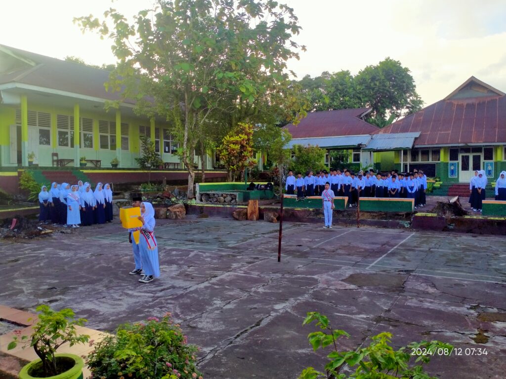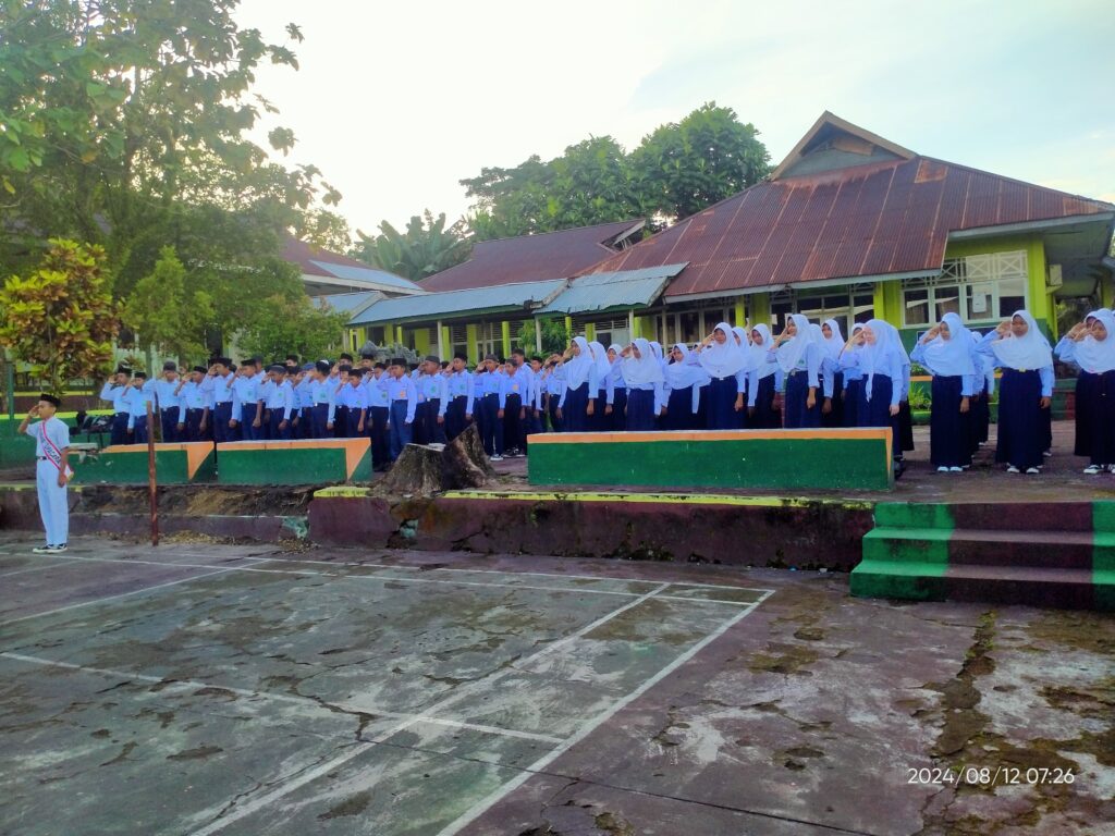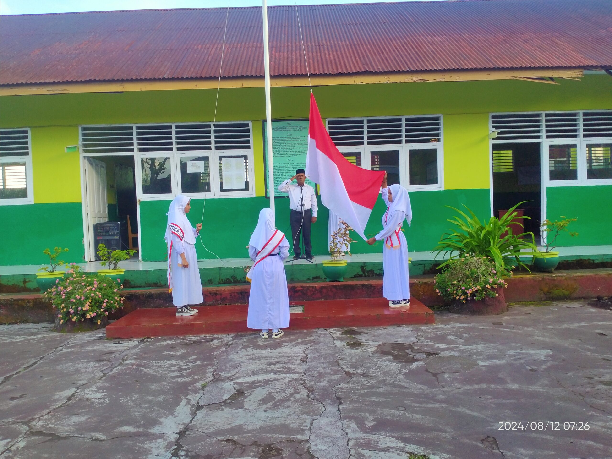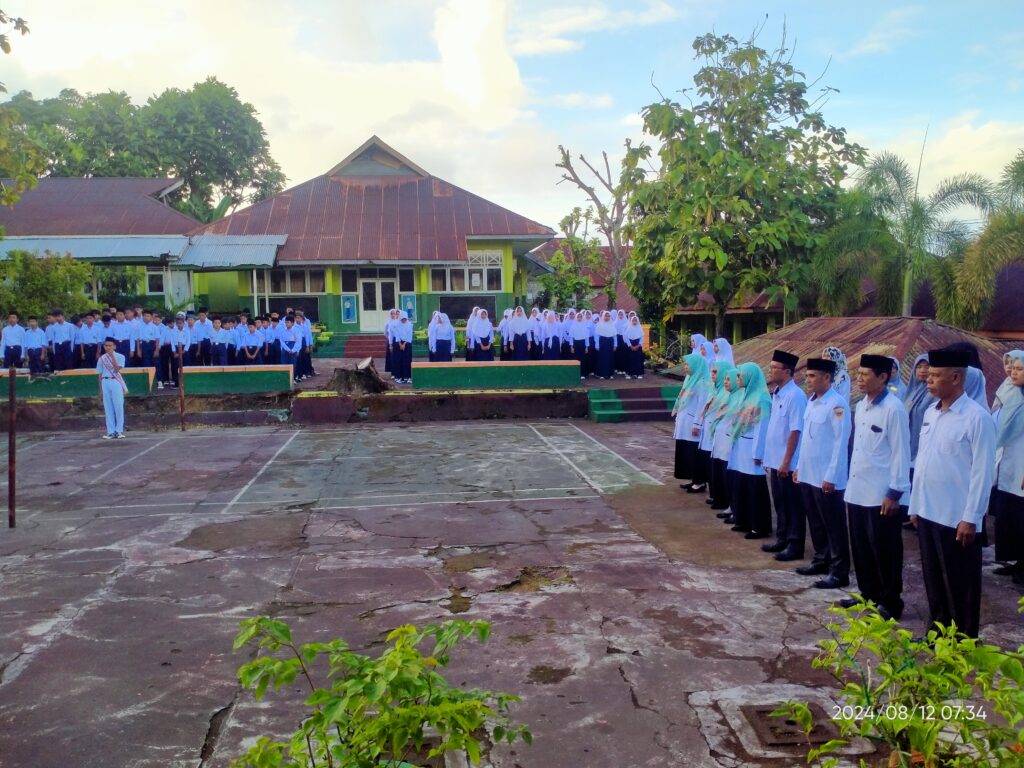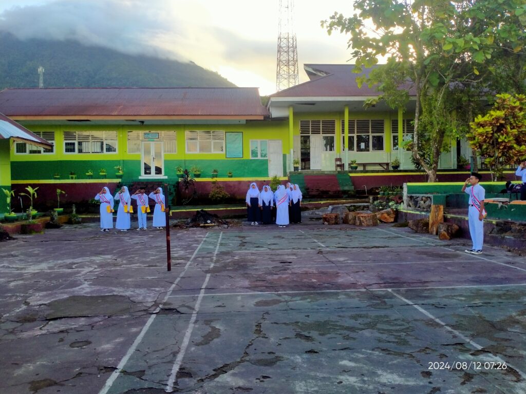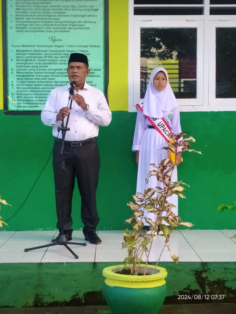 Upacara bendera hari senin tanggal 12 Agustus 2024 di lapangan MTs Negeri 1 Tidore bertindak sebagai Pembina Upacara Kepala Madrasah, Lukman Djamal, S.Pd dan Personil Upacara kelas IX