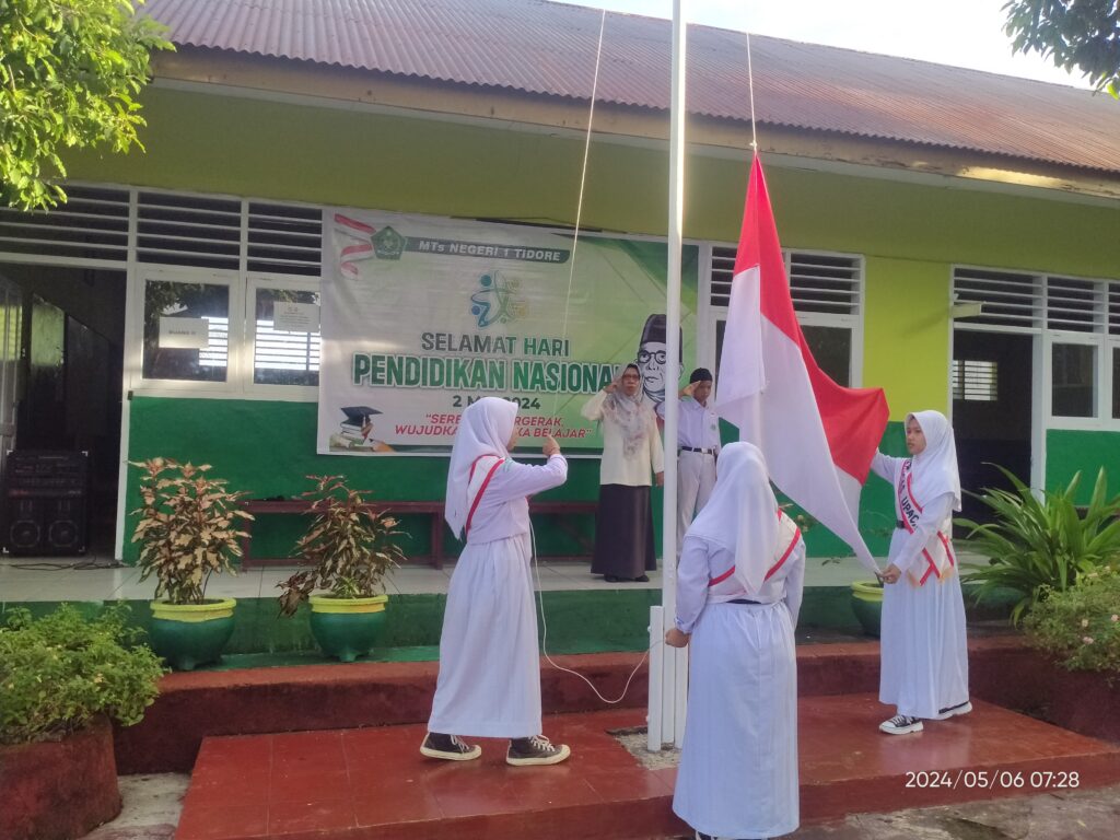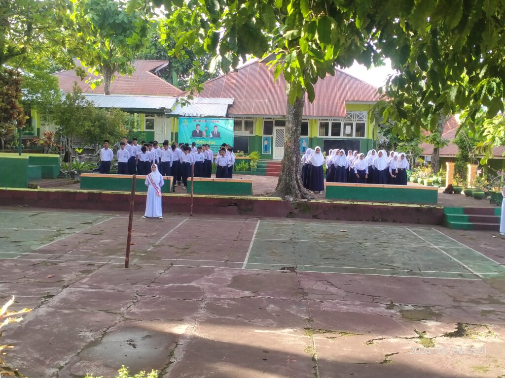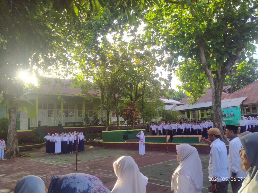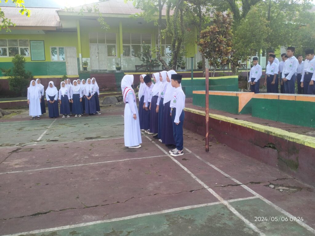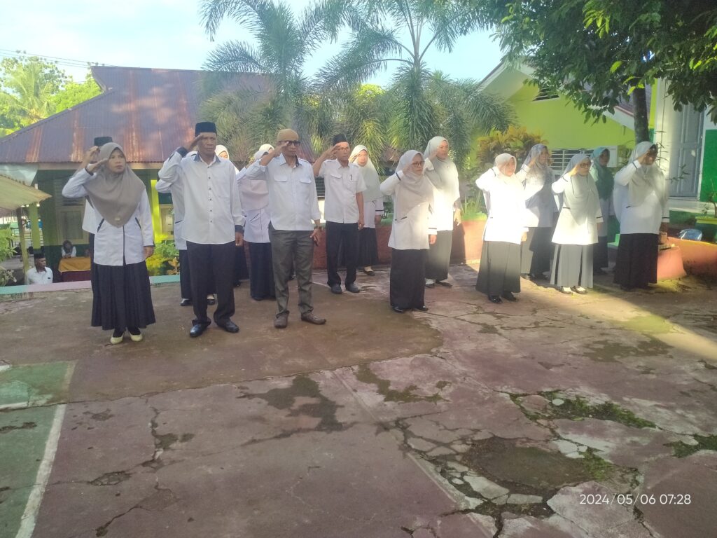 Tidore, 06-05-2024. Upacara bendera hari senin dihalaman MTsN 1 Tidore, bertindak sebaga pembina upacara Plt.kepala Madrasah Siti Hadjar Mochdar, S.Pd, personil upacara dari kelas VIIIB dan peserta upacara seluruh guru, tendik serta siswa siswi